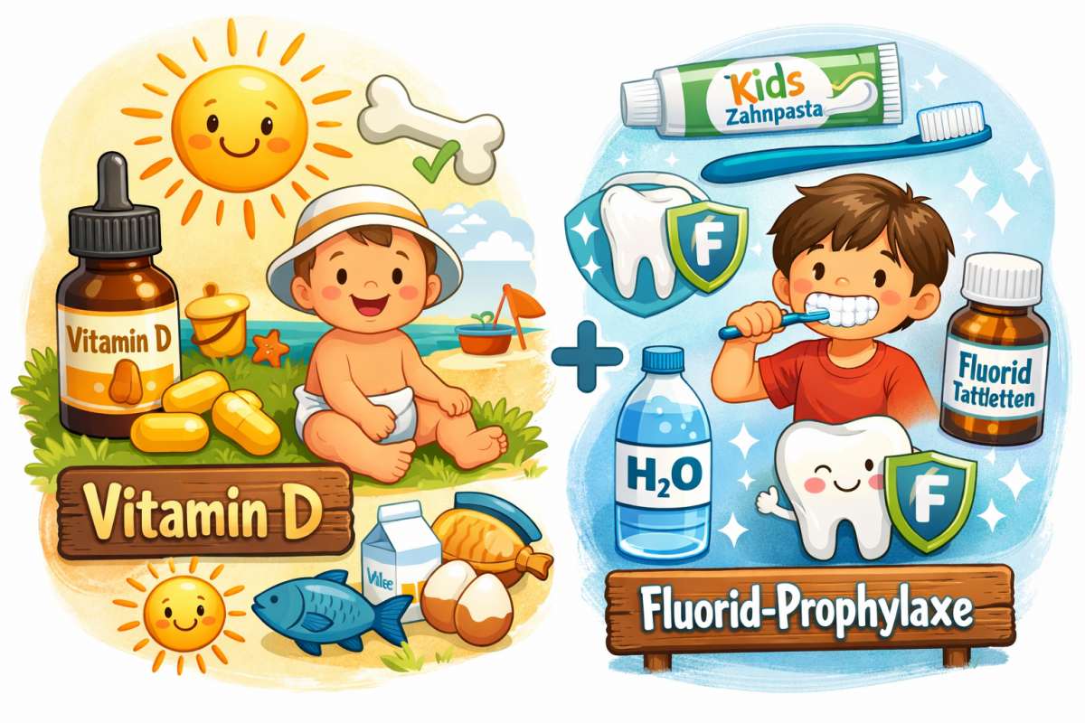 Sowohl die in Muttermilch/Formulanahrung als auch in Gläschen enthaltenen Mengen an Vitamin D sind nicht ausreichend, um den Vitamin D Bedarf eines Säuglings zu decken. Die Eigenproduktion von Vitamin D in der Haut des Babys ist ungenügend. In Deutschland wird die erforderliche Lichtstrahlung zwischen November und Februar nicht erreicht. Ein Sonnenbad des Babys in direkter Sonneneinstrahlung verbietet sich aufgrund der schädigenden Wirkung der UV-Strahlung. Ein Sonnenbad hinter einer Fensterscheibe hilft recht wenig, da eine normale Fensterverglasung den größten Teil des notwendigen Lichspektrums herausfiltert.